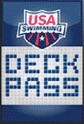 Deck Pass and Deck Pass Plus are where you find your USA Swimming membership card, current IMR / IMX scores, and earn patches from USA Swimming for all your great swims. Deck Pass Plus allows you to watch your teammates compete at National Meets Live. Deck Pass is Free. Deck Pass Plus has a small onetime fee to purchase.